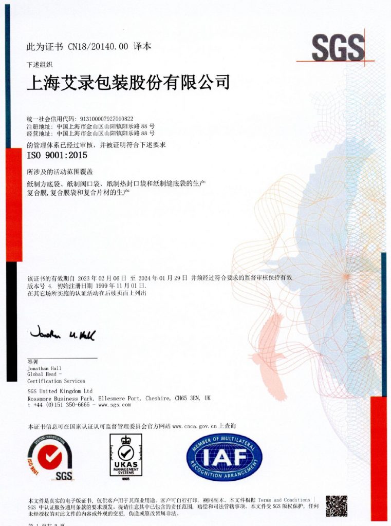 上海艾錄包裝股份有限公司(證券簡稱:上海艾錄 證券代碼:301062)成立于2006年,主要從事工業(yè)用紙包裝、塑料包裝及智能包裝系統(tǒng)的研發(fā)、設(shè)計、生產(chǎn)、銷售以及服務(wù)。經(jīng)過多年的持續(xù)發(fā)展,公司已由國內(nèi)領(lǐng)先的工業(yè)用紙包裝公司,成長為一家工業(yè)與消費(fèi)包裝產(chǎn)品皆備的軟體包裝一體化解決方案提供商,并通過智能化、柔性化、定制化的生產(chǎn)能力,為妙可藍(lán)多、蒙牛、光明、雀巢、菲仕蘭、 陶氏、巴斯夫、沈陽化工、佰利聯(lián)、德高、立邦、東方雨虹、美巢等國內(nèi)外知名工業(yè)及消費(fèi)類企業(yè)客戶提供包裝解決方案所需的相關(guān)產(chǎn)品。